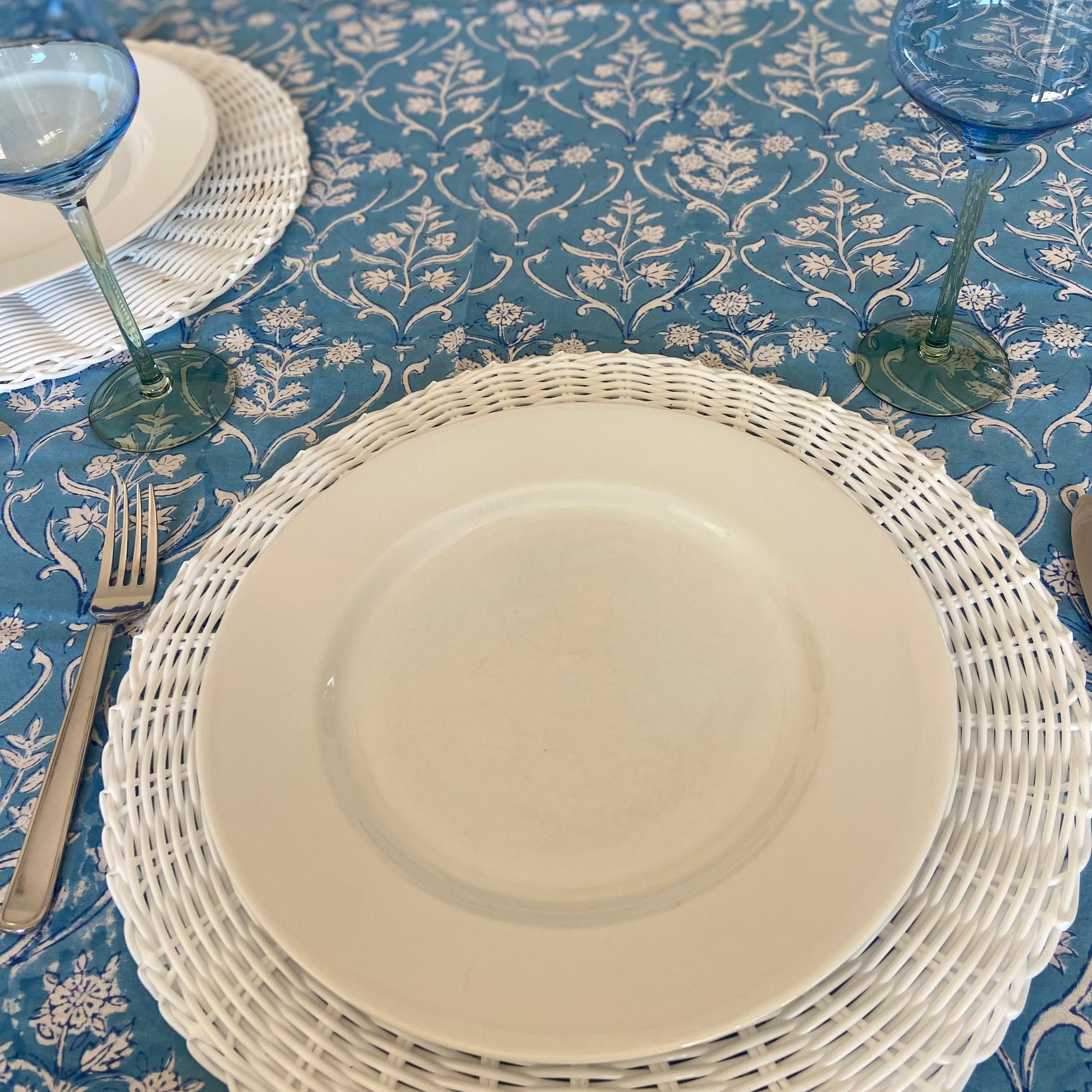 Hand block printed, these handmade designer cotton tablecloths are spectacular artworks created by the deft artisans of Jaipur.