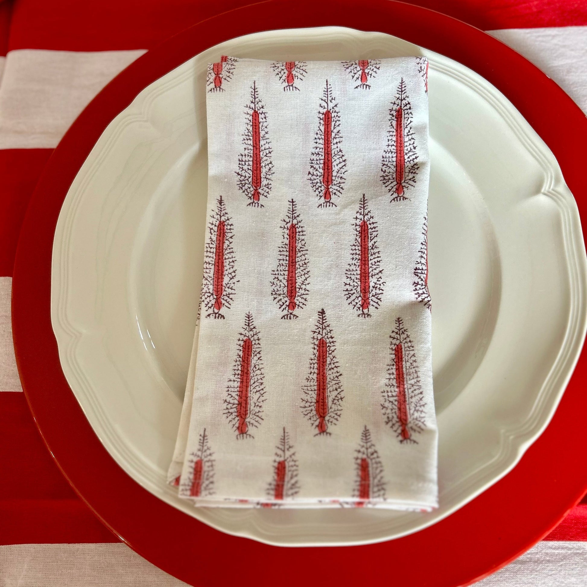 Block printed Red Tree napkins