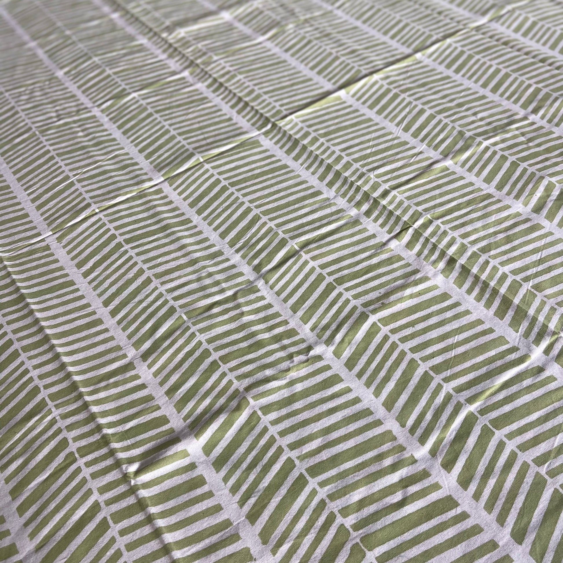 Herringbone Green and White Block Printed Cotton Tablecloth 150 X 220cm