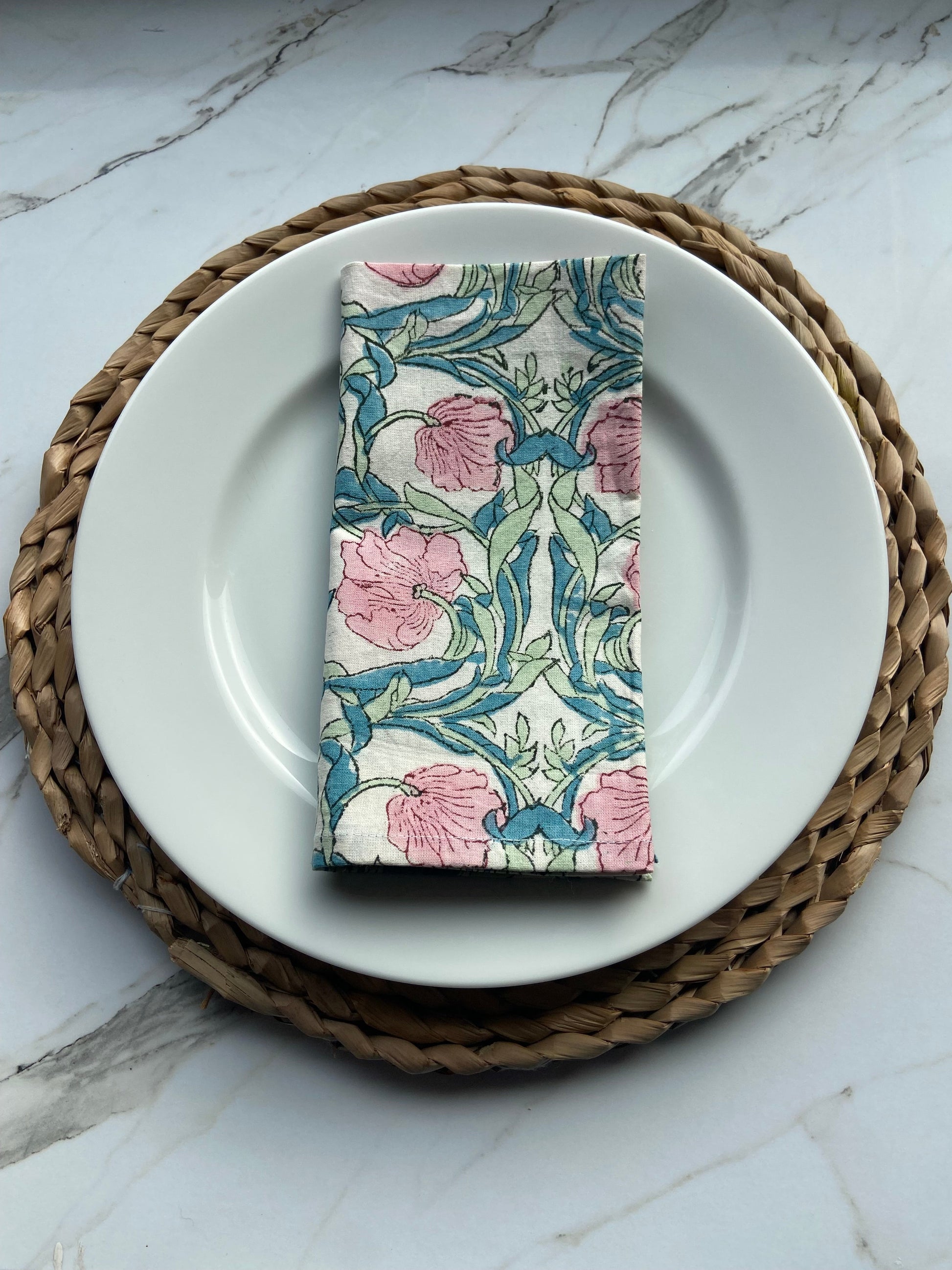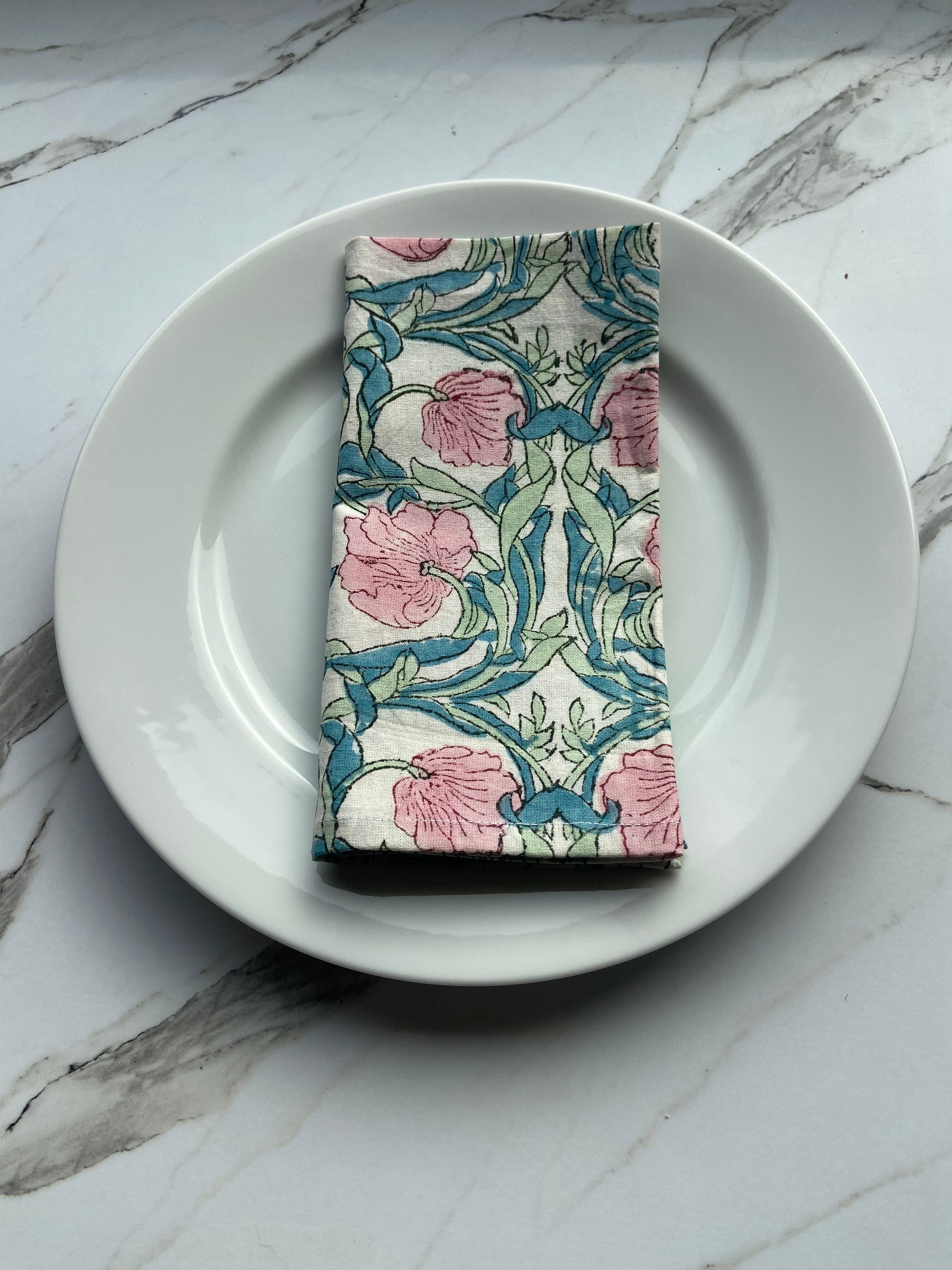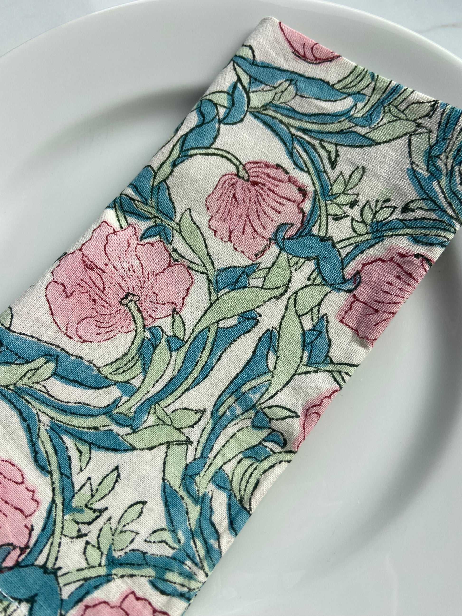 Hand Block Printed Cotton Napkin Bauhaus Pink Flower