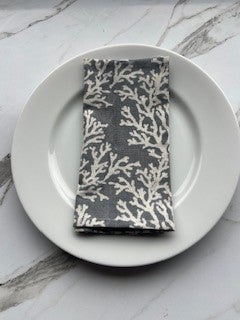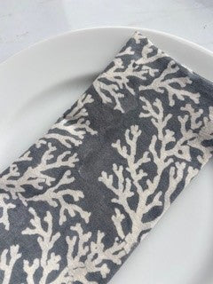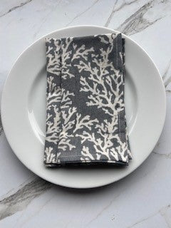 Hand Block Printed Cotton Napkin Coral Ashley Grey