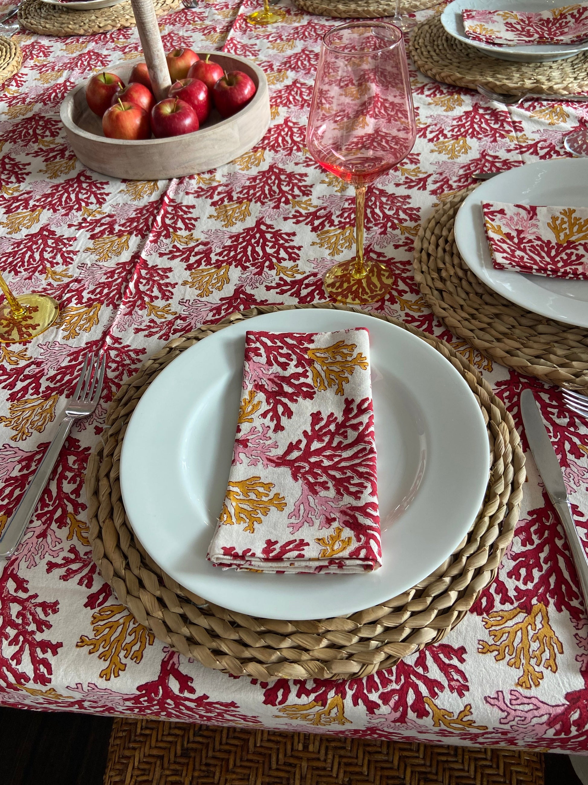 Hand Block Printed Cotton Napkin Coral Multi Red