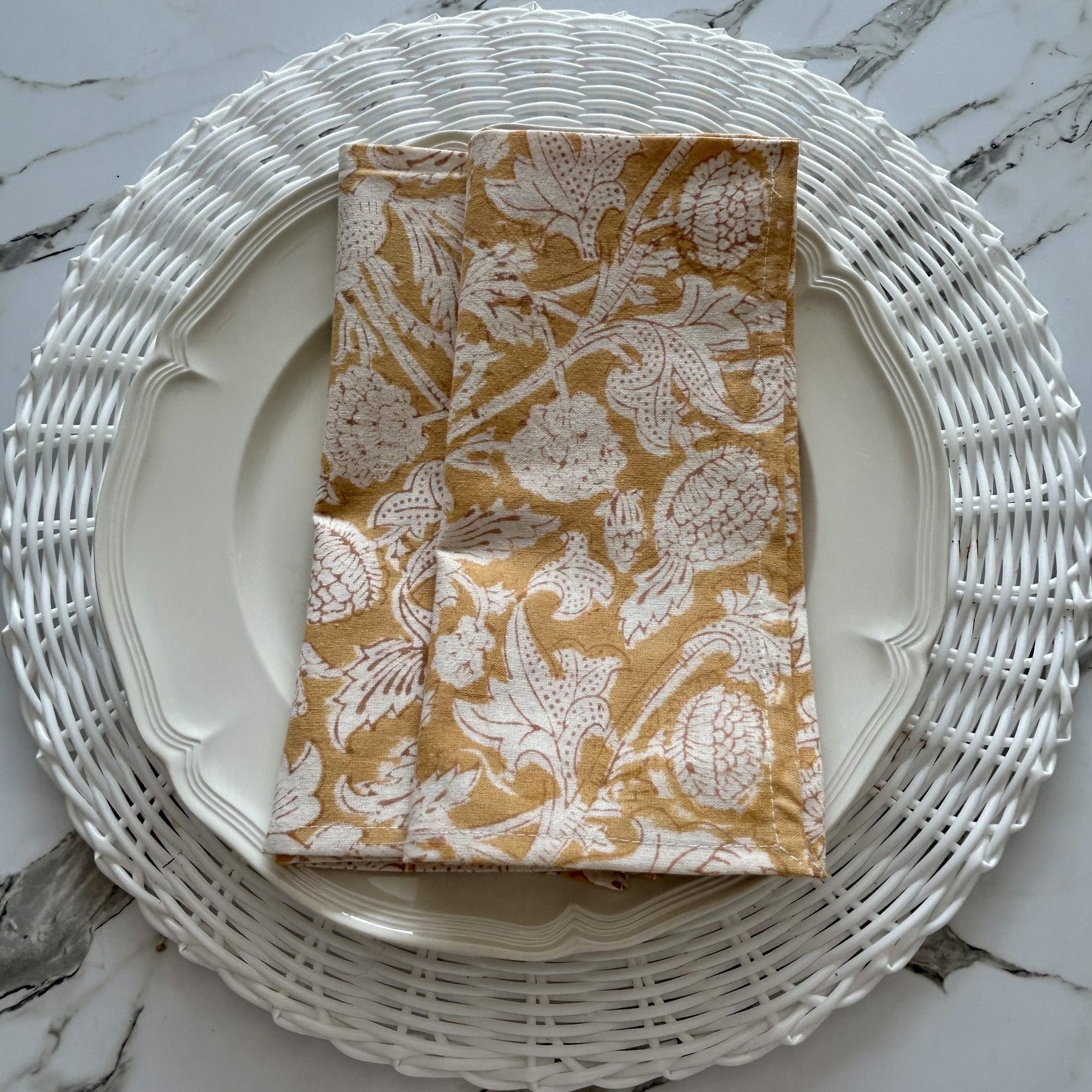 Hand Block Printed Cotton Napkin Mustard Paisley
