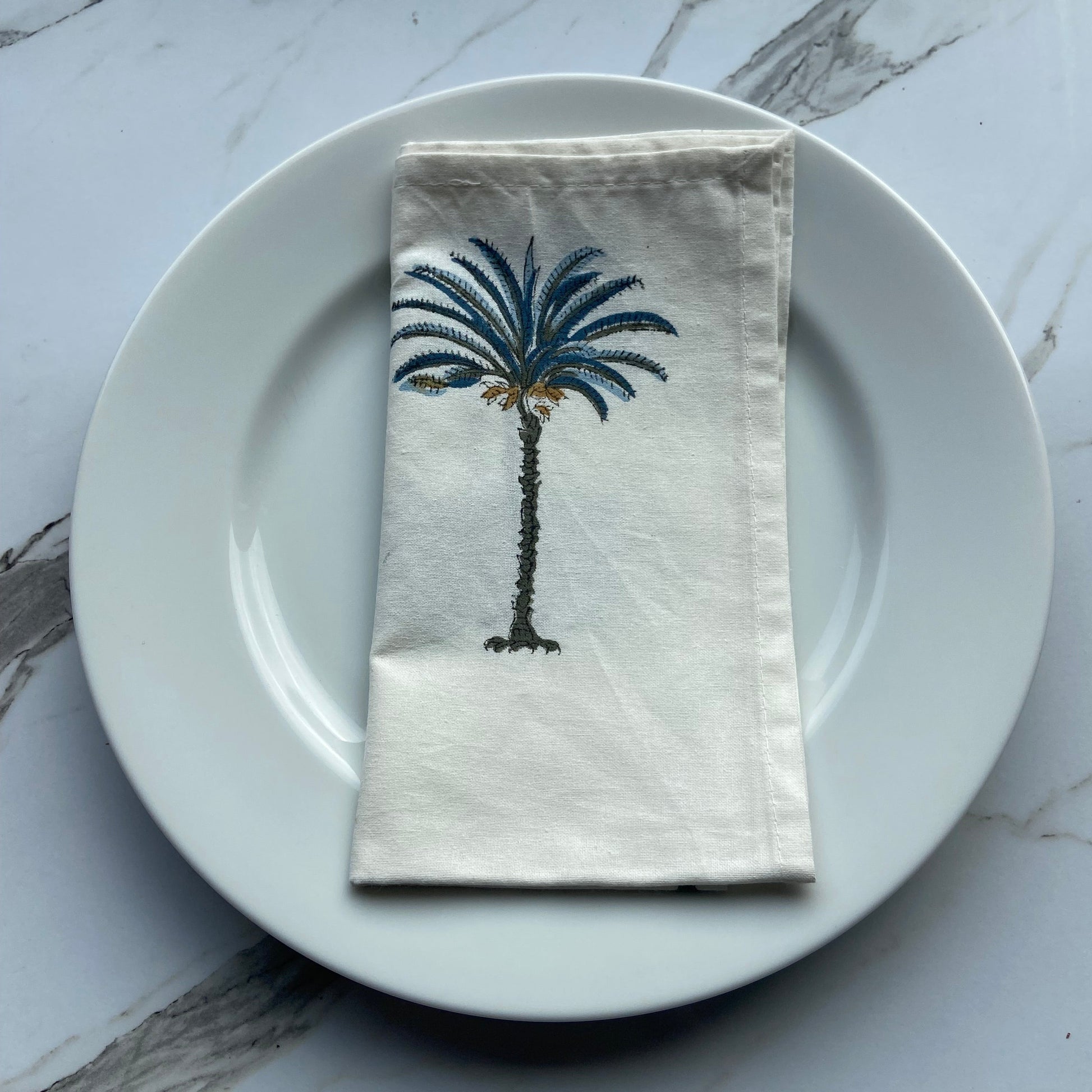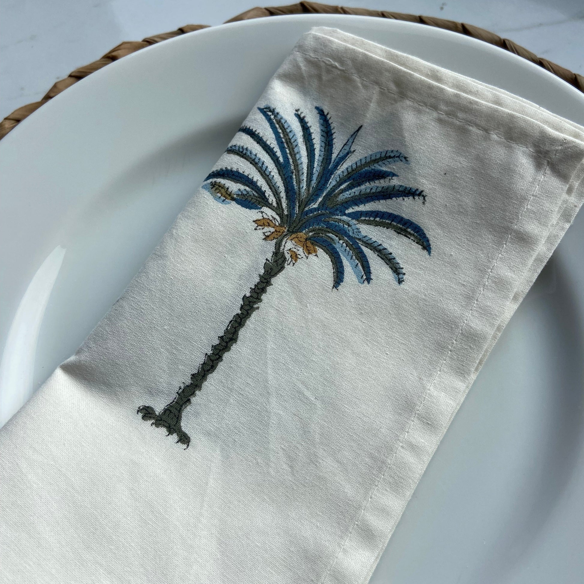 Hand Block Printed Cotton Napkin Palm Tree Blue