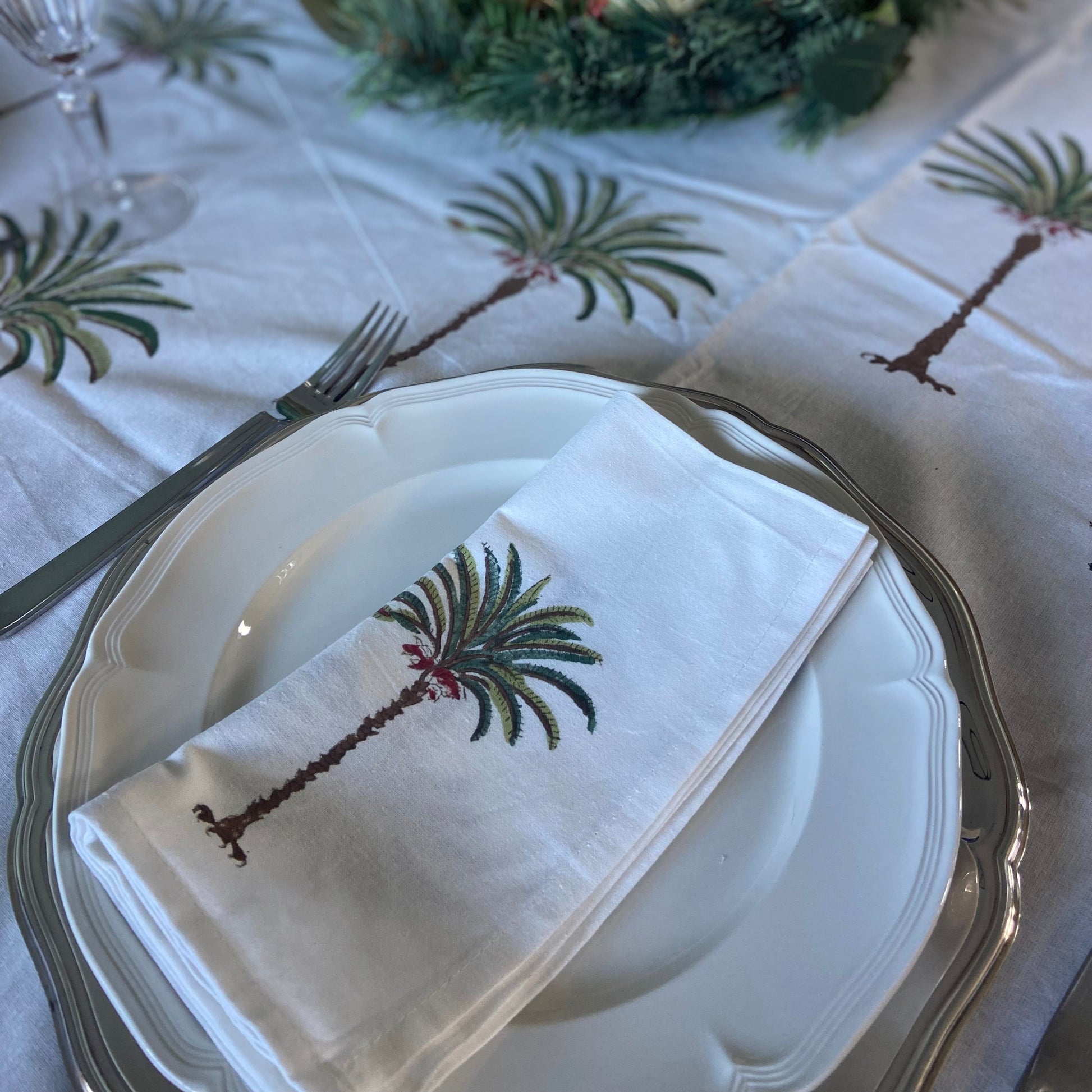 Hand Block Printed Cotton Napkin Palm Tree Green