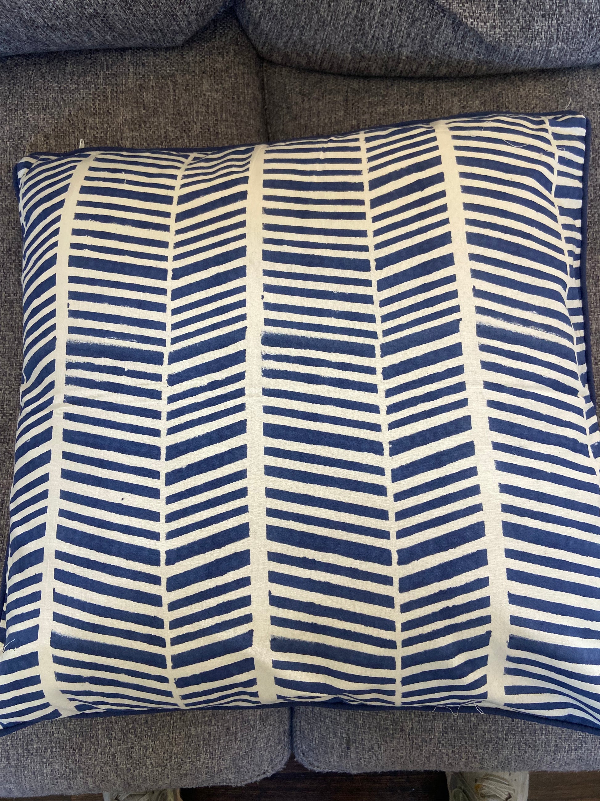 Herringbone Navy Blue Piping Cushions Covers (50X 50cm)