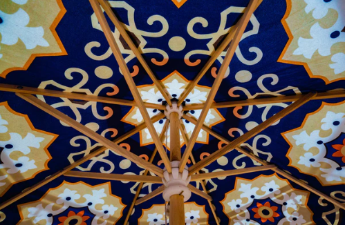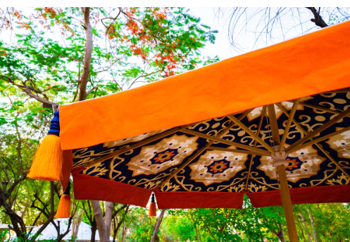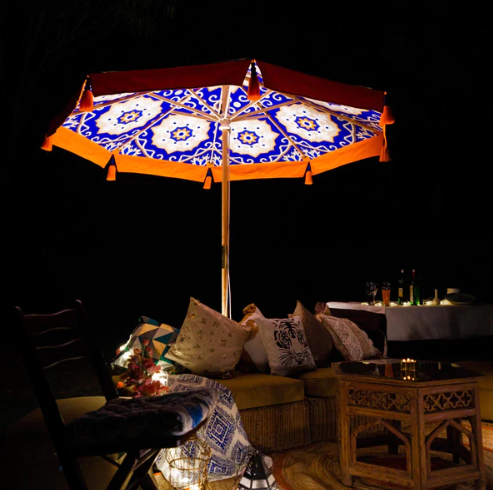 If you want a showstopper this parasol is for you... Inspired by the famous Jaipur Blue Pottery and featuring the traditional pairing of blue and orange, this is sure to add a talking point in your outdoor home.